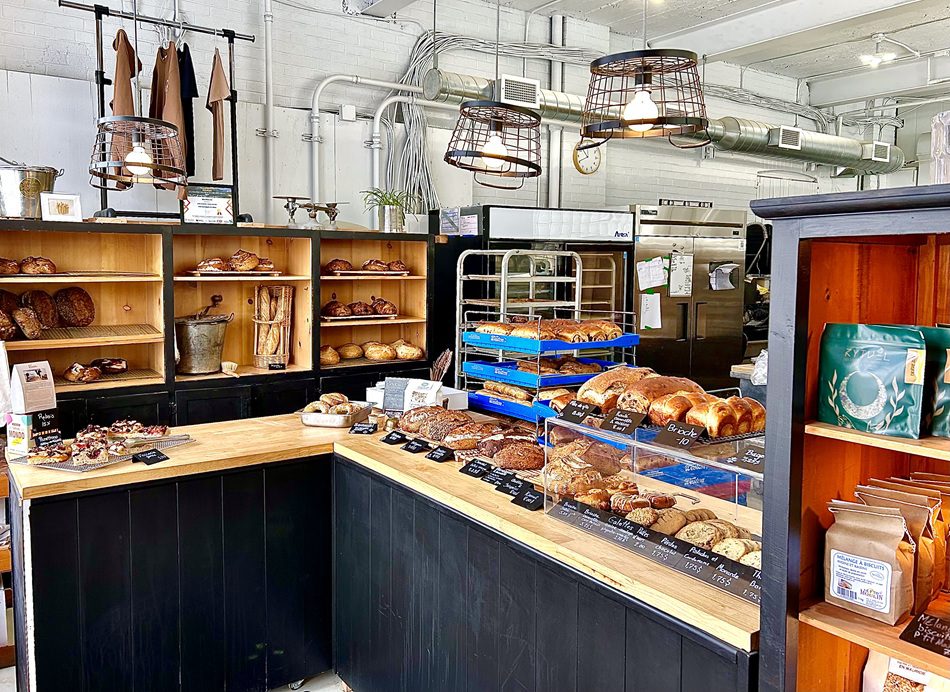 - Dans cette boulangerie artisanale, on trouve une variété de pains au levain faits de farines biologiques locales moulues sur meule de pierre, des brioches, des biscuits et d’autres créations saisonnières. Tout est fait à la main, localement et à partir d’ingrédients du terroir.